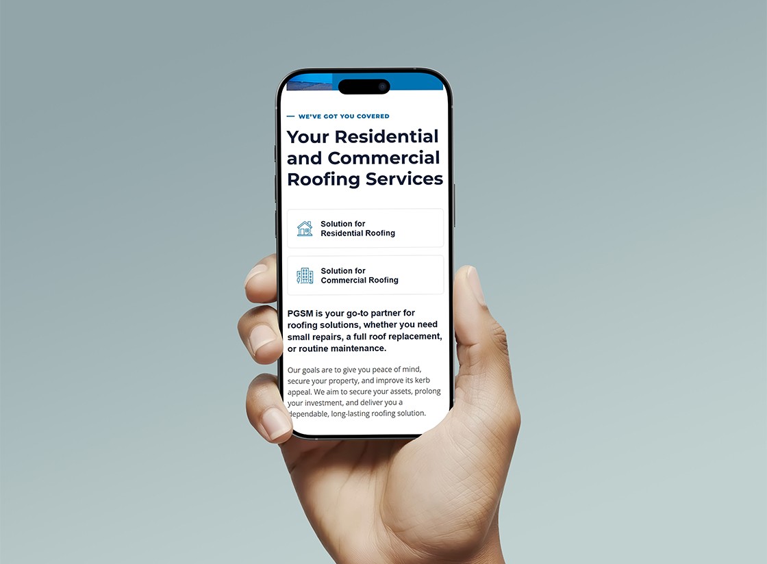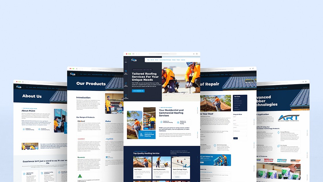 PGSM is a roofing and property services company based in Perth, Australia. The client had an existing basic website that needed a full redesign to align better with market expectations. I was responsible for handling the website’s design and content structure, along with supporting their broader branding and marketing efforts.